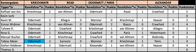 Ergebnisse - Abfahrt
